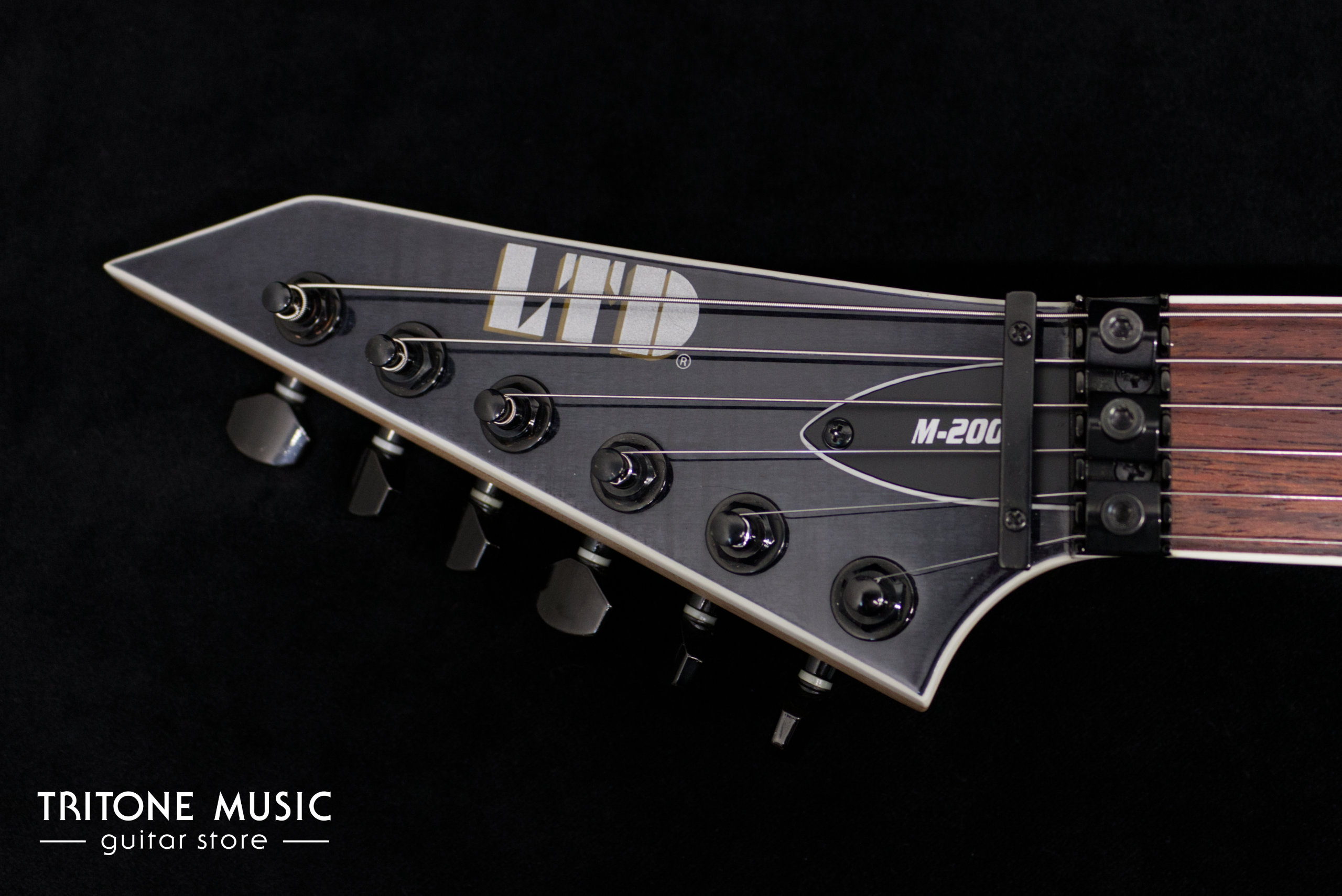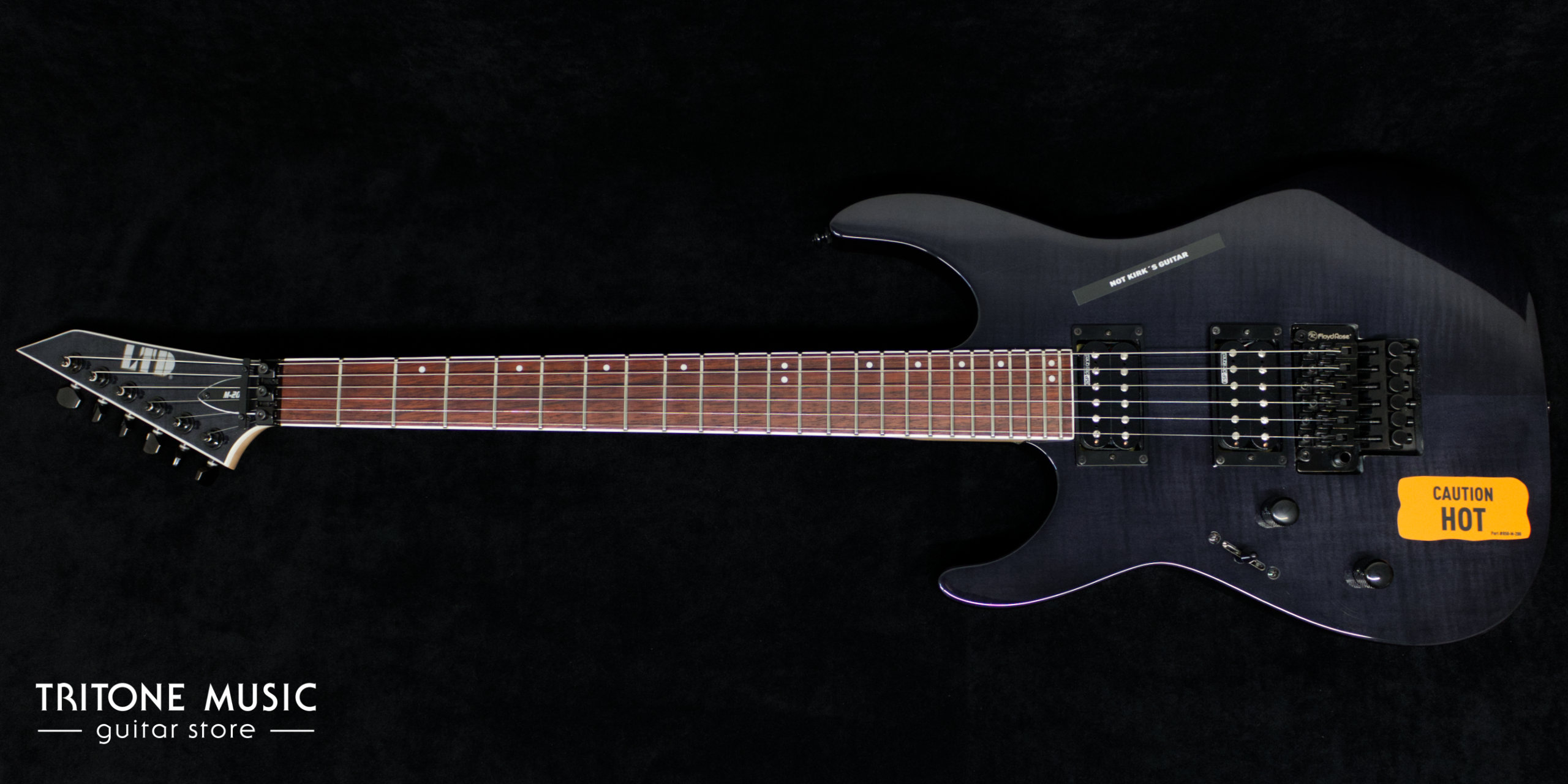 Mit dieser ESP LTD M-200 LH erhält man auch als Linkshänder ein erschwingliches Shred-Instrument von überzeugender Qualität. Der klassische, flache „Slab“-Korpus der M-Serie besteht aus Mahagoni und ist mit einem Riegelahorn-Top versehen, das im See Thru Black-Finish besonders schön zur Geltung kommt. Auf dem dünnen, flachen Ahornhals sitzt ein Palisandergriffbrett mit 24 Extra-Jumbo-Bünden. Ausgestattet ist die Gitarre mit einem LTD by Floyd Rose Tremolo und durchsetzungsstarken ESP Designed Pickups.