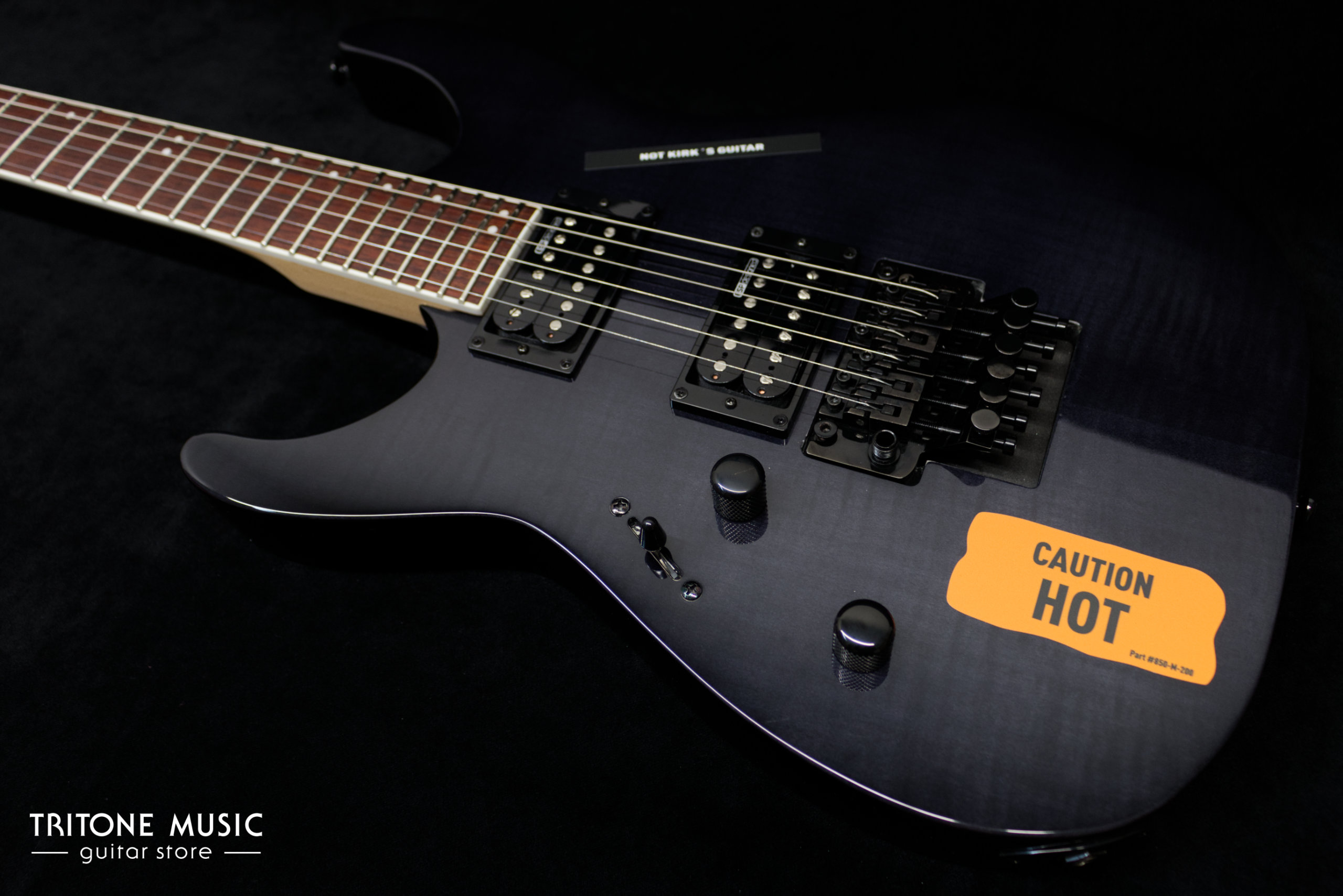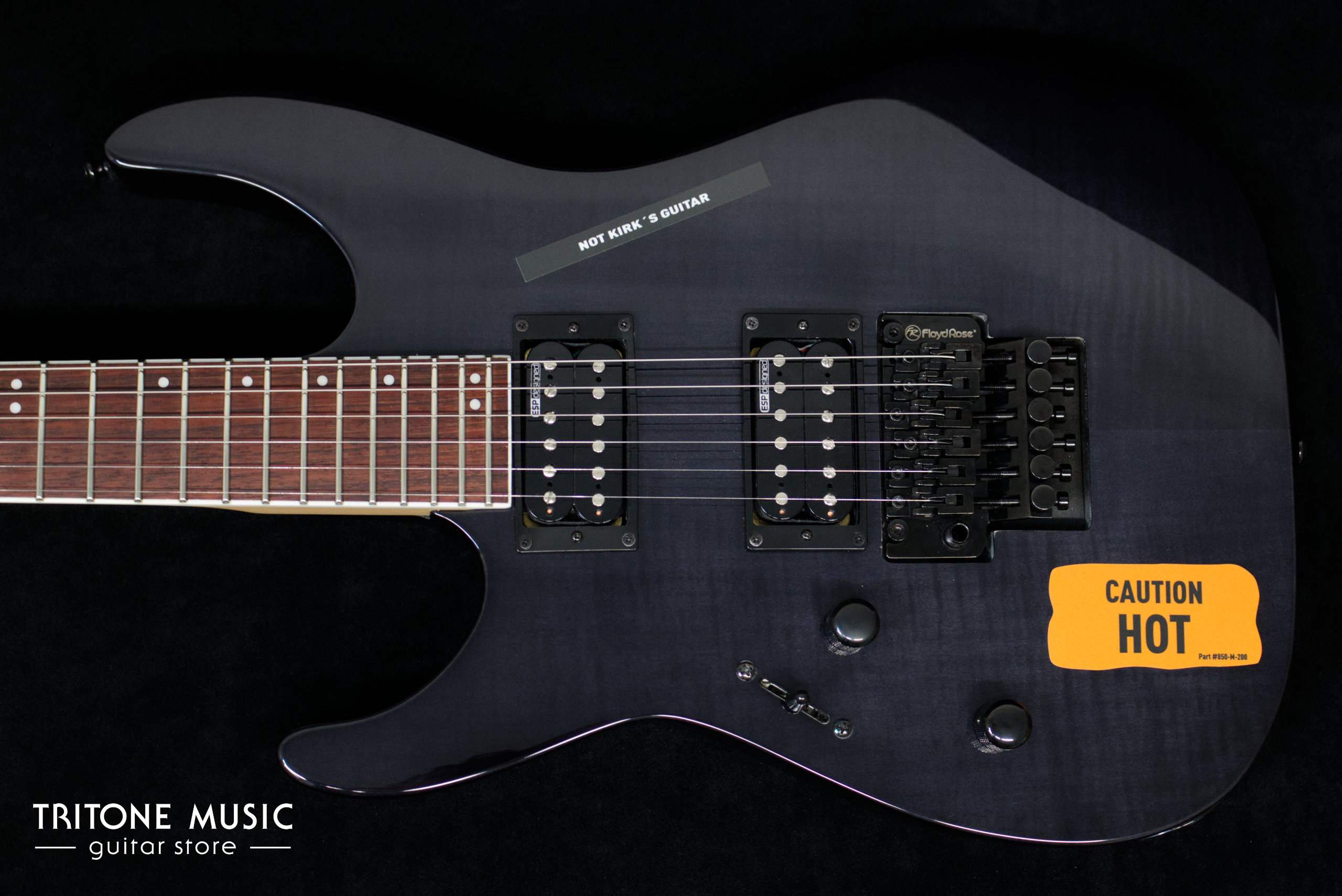 Diese gebrauchte M-200 befindet sich in sehr gutem Zustand, zeigt jedoch sichtbare Gebrauchsspuren in Form von Kratzern auf dem Korpus. Die vom Vorbesitzer angebrachten Kirk Hammett „Caution-Hot“-Aufkleber können auf Wunsch rückstandsfrei entfernt werden.