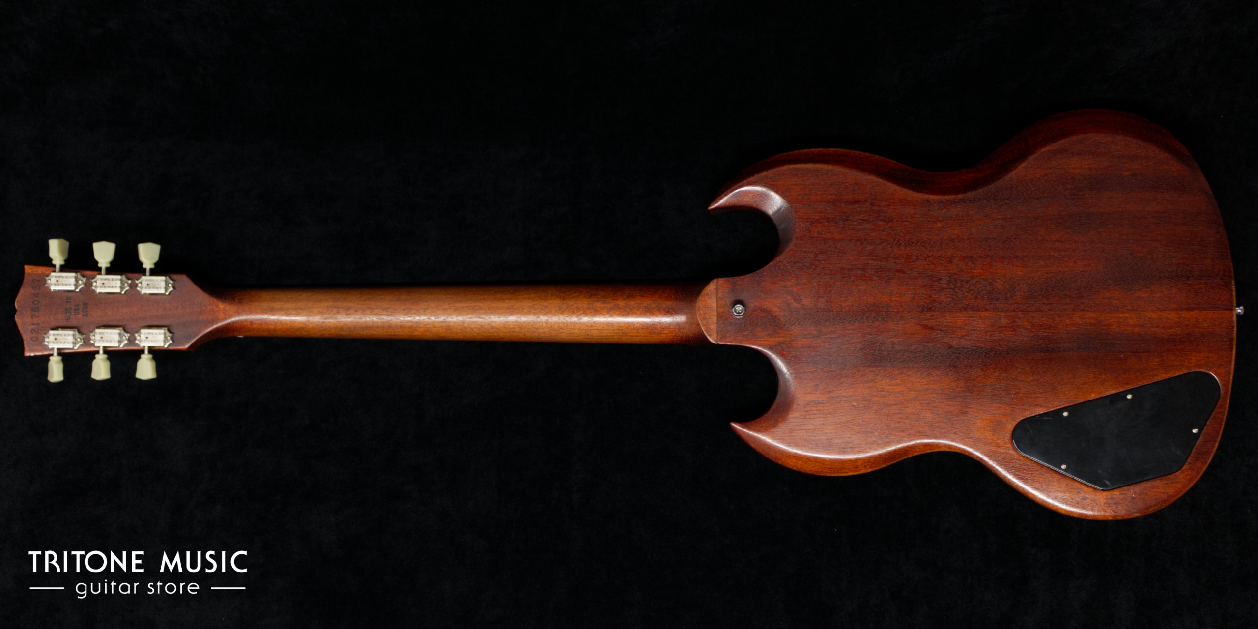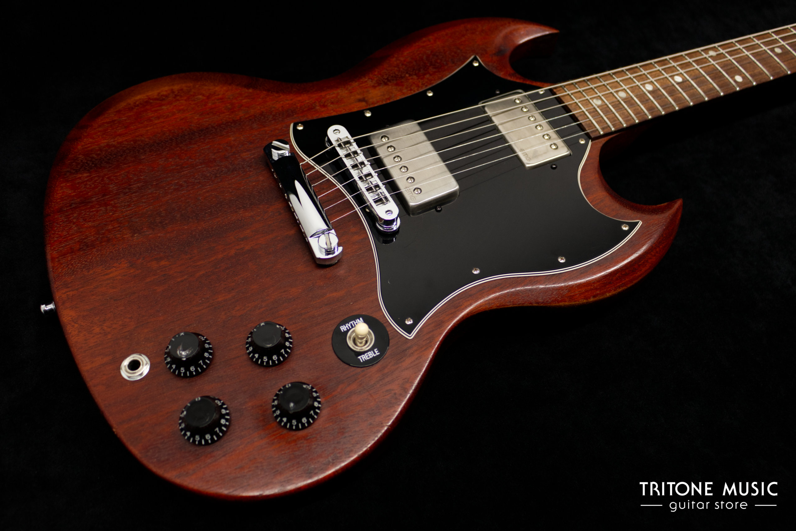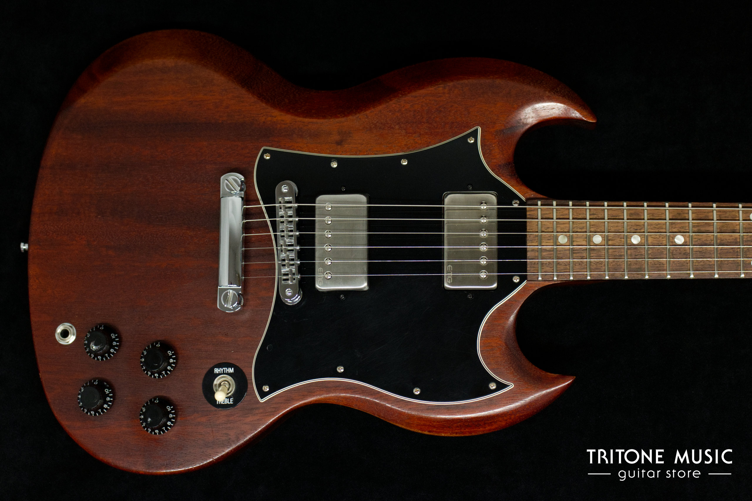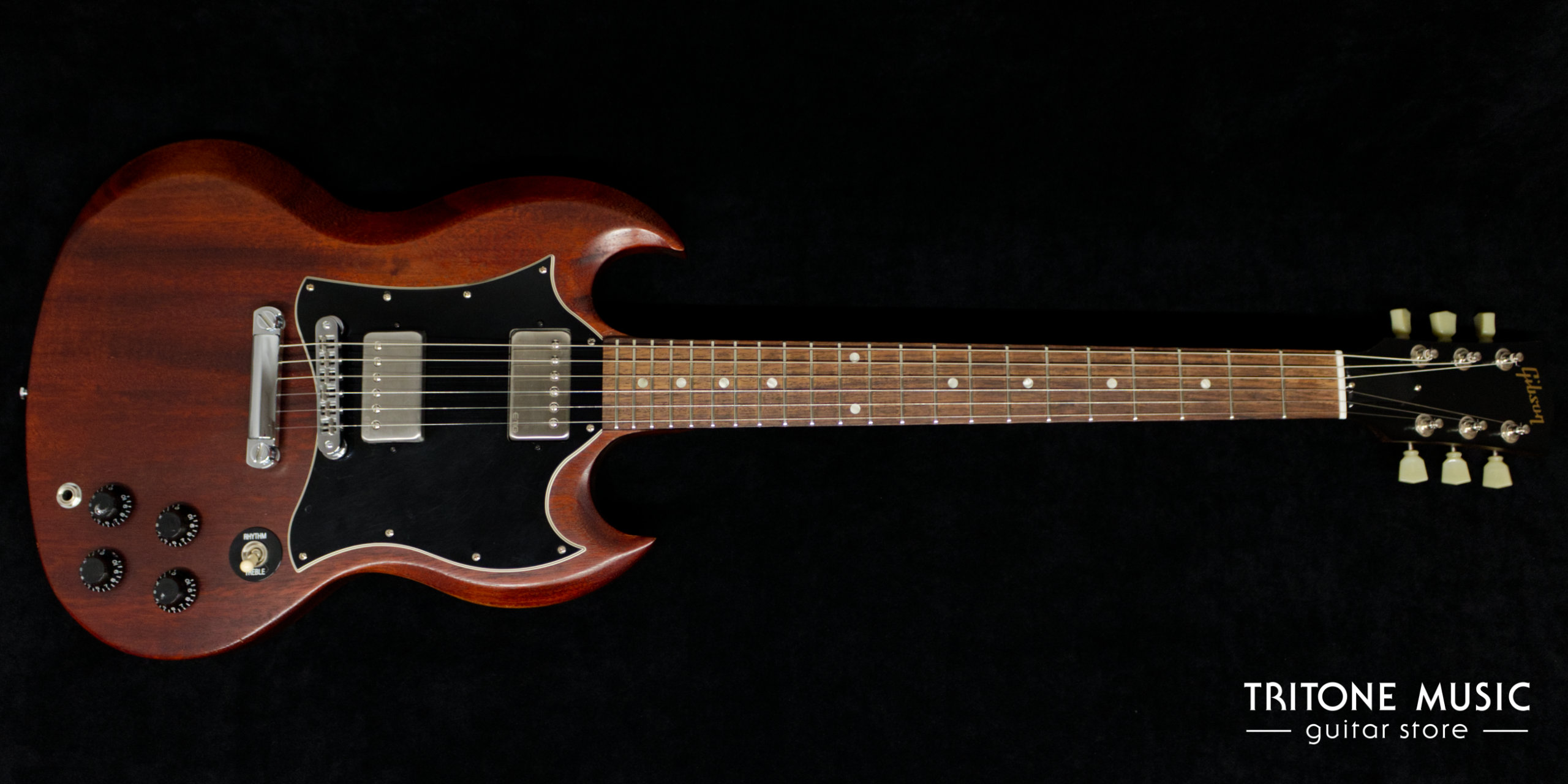 Diese Gibson SG Special Faded in der Farbe Worn Brown stammt aus dem Jahr 2008. Die originalen Pickups wurden durch ein Set passiver EMG H2 Humbucker ersetzt. Der Zustand der Gitarre ist gut, mit einigen Gebrauchsspuren und Kratzern.