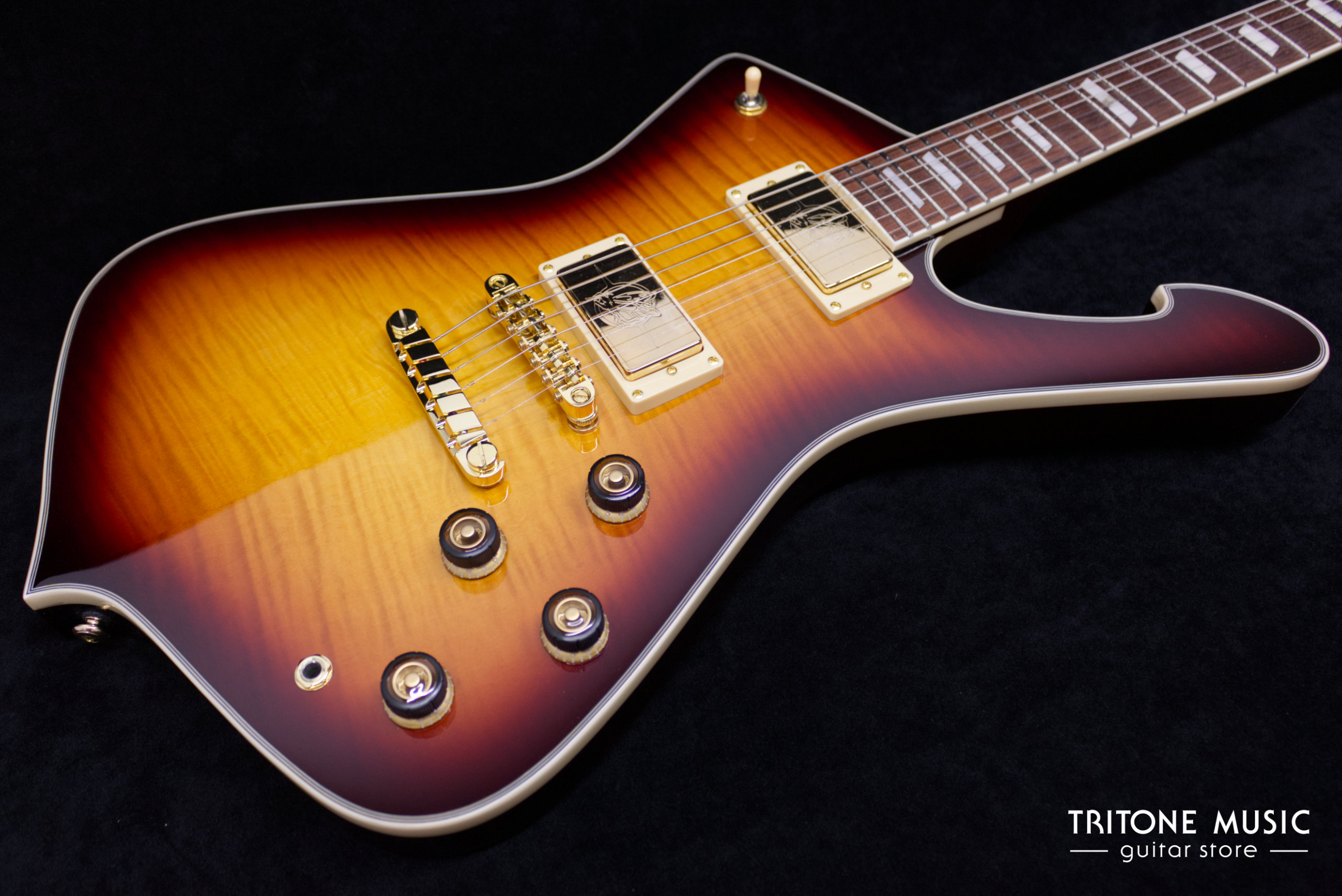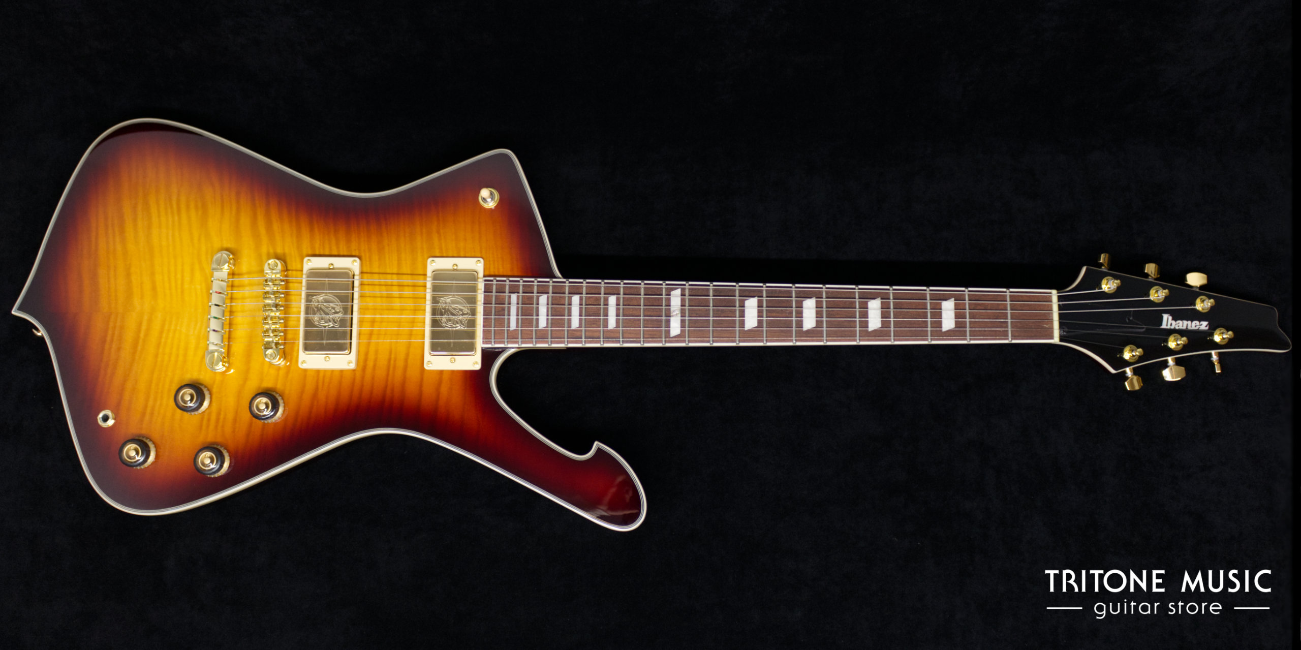 Mit ihren geschwungenen Linien und ihrem markanten Erscheinungsbild wurde dieses Modell erstmals 1977 der Welt vorgestellt und erhielt 1978 ihren Namen. Diese IC420FM in der Farbe Violin Sunburst verfügt über einen Okoume-Hals, ein Jatoba-Griffbrett sowie eine Decke aus geflammtem Ahorn auf einem Okoume-Korpus. Außerdem ist die Gitarre mit Super 80 H-H Tonabnehmern, einer Gibraltar Performer Brücke und einem Quick Change III Saitenhalter ausgestattet.