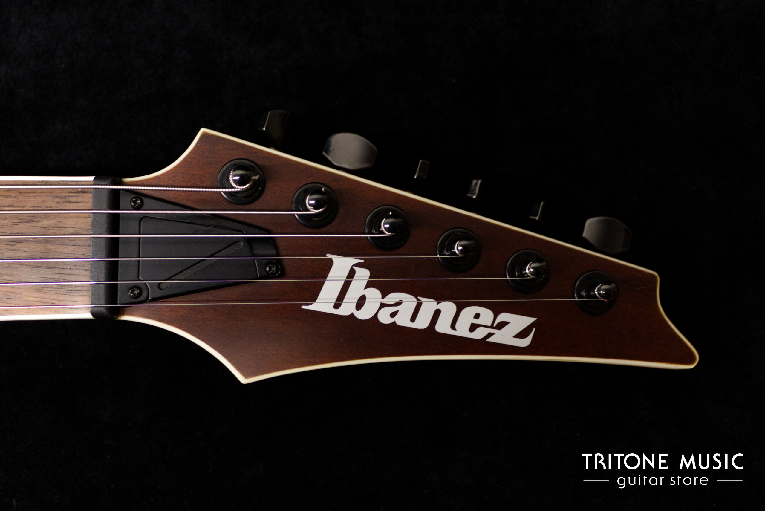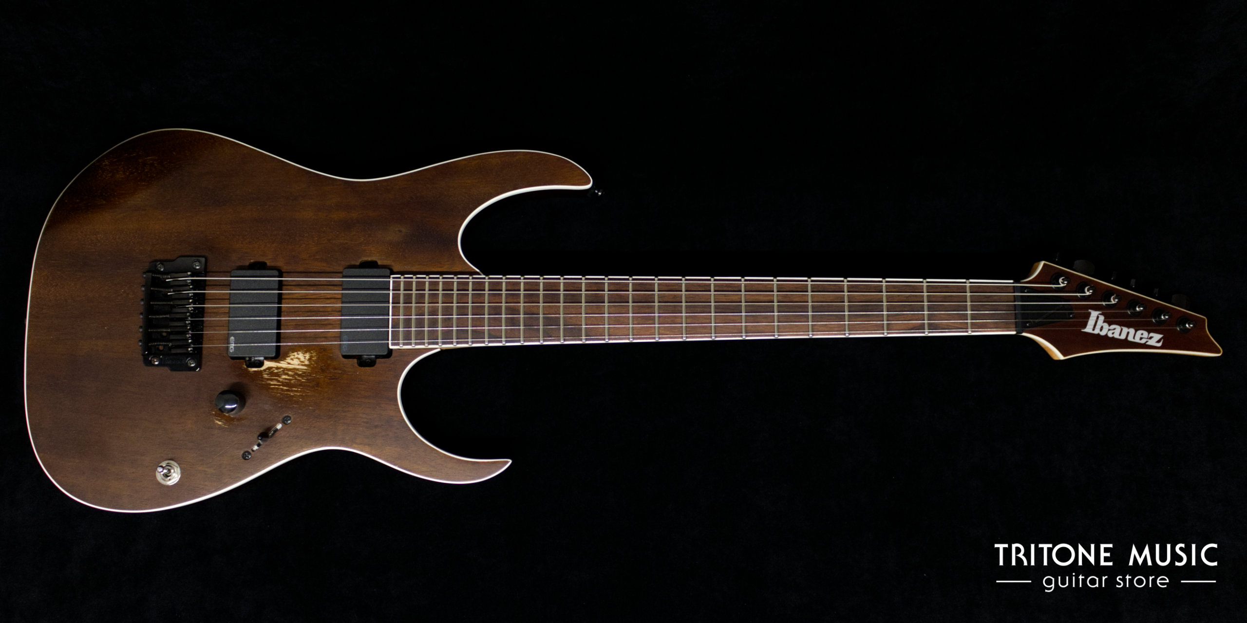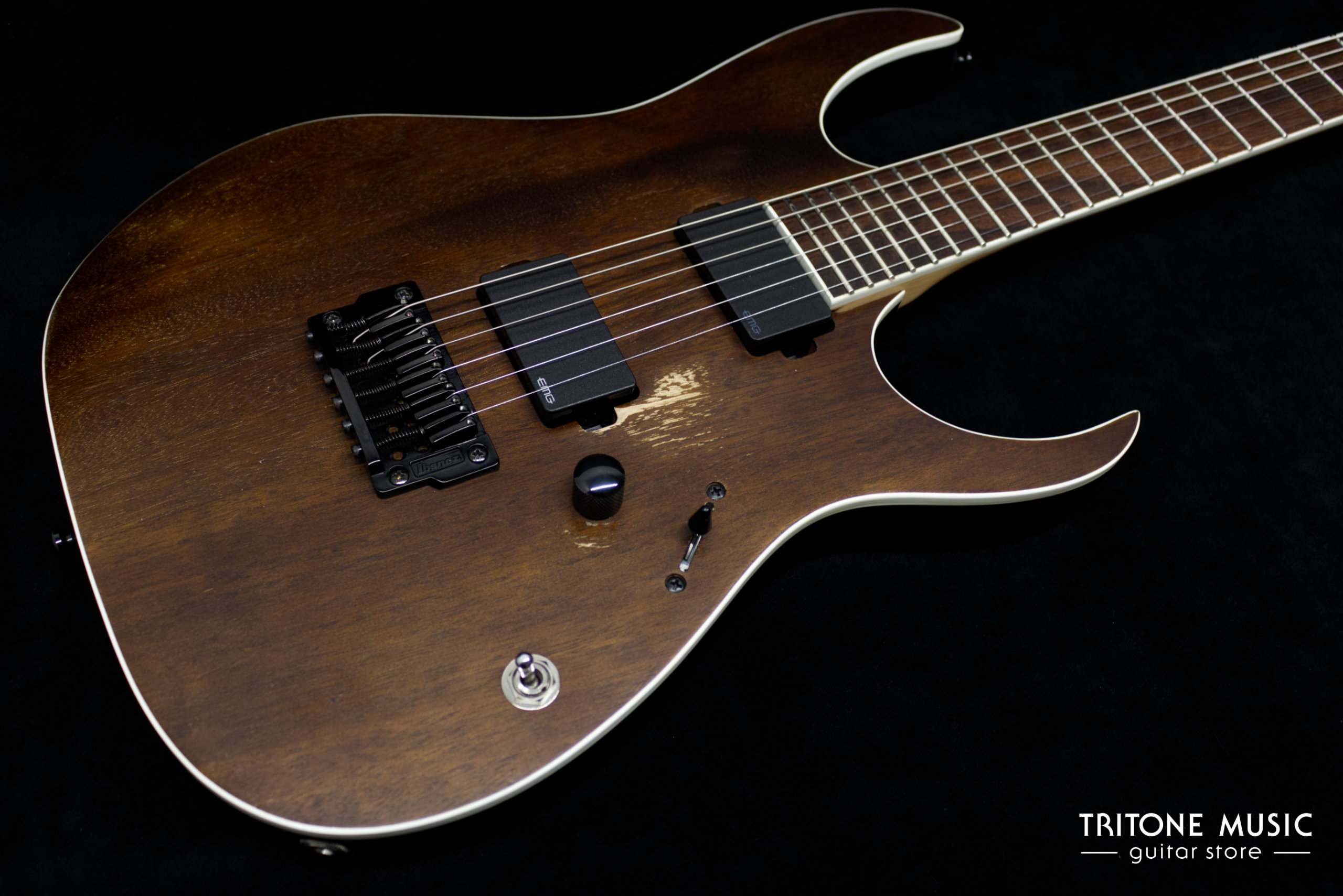 Diese Ibanez RGIR20BFE in Walnut Flat aus der Iron Label-Reihe wurde 2015 in Indonesien gefertigt. Sie besitzt einen Mahagoni-Korpus mit weißem Binding, einen geschraubten Nitro-Wizard-Hals aus Ahorn und Bubinga sowie ein 24-bündiges Palisandergriffbrett – ebenfalls mit weißem Binding und ohne Inlays. Zur Ausstattung gehören eine Gibraltar Standard II-Fixed Bridge, zwei EMG-Aktivhumbucker und ein Kill Switch. Das angebotene Exemplar zeigt starke optische Gebrauchsspuren; am Body wurde unterhalb des Bridge-Pickups durch das Pick Farbe abgetragen. Trotz der kosmetischen Abnutzung überzeugt die Gitarre durch eine fantastische Bespielbarkeit und ihr angenehmes Leichtgewicht von nur 2805g.