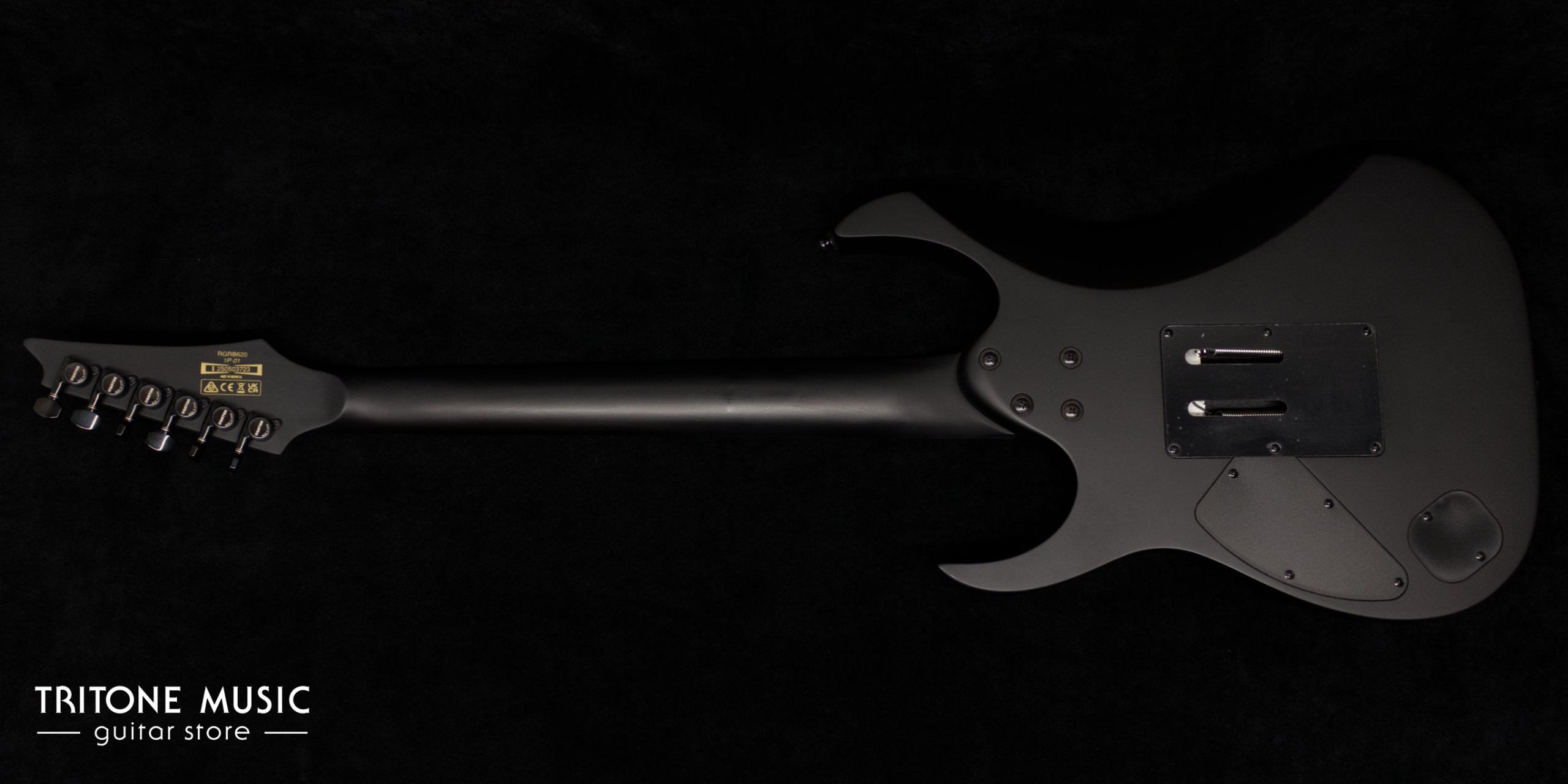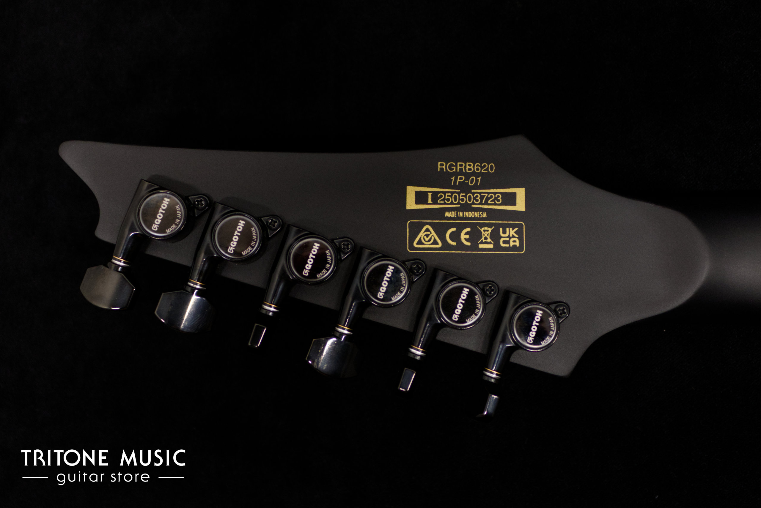 Die Ibanez RGRB620-BKF der Iron Label-Serie wurde ursprünglich mit einem einzigen Ziel entwickelt: Metal – und nichts als Metal. Sie ist bewusst minimalistisch gehalten – du wirst keine Funktion finden, die nicht direkt zu den markerschütternden, erdbebenartigen Sounds beiträgt, die diese Gitarre erzeugen kann. Aufbauend auf dieser Philosophie bringt diese Generation der Iron Label-Gitarren diese rohe Metal-Energie auf ein völlig neues Level. Mit ihrem komplett schwarzen Look und der hochgezüchteten Elektronik gehören sie zu den markantesten Metal-Gitarren, die Ibanez je gebaut hat.