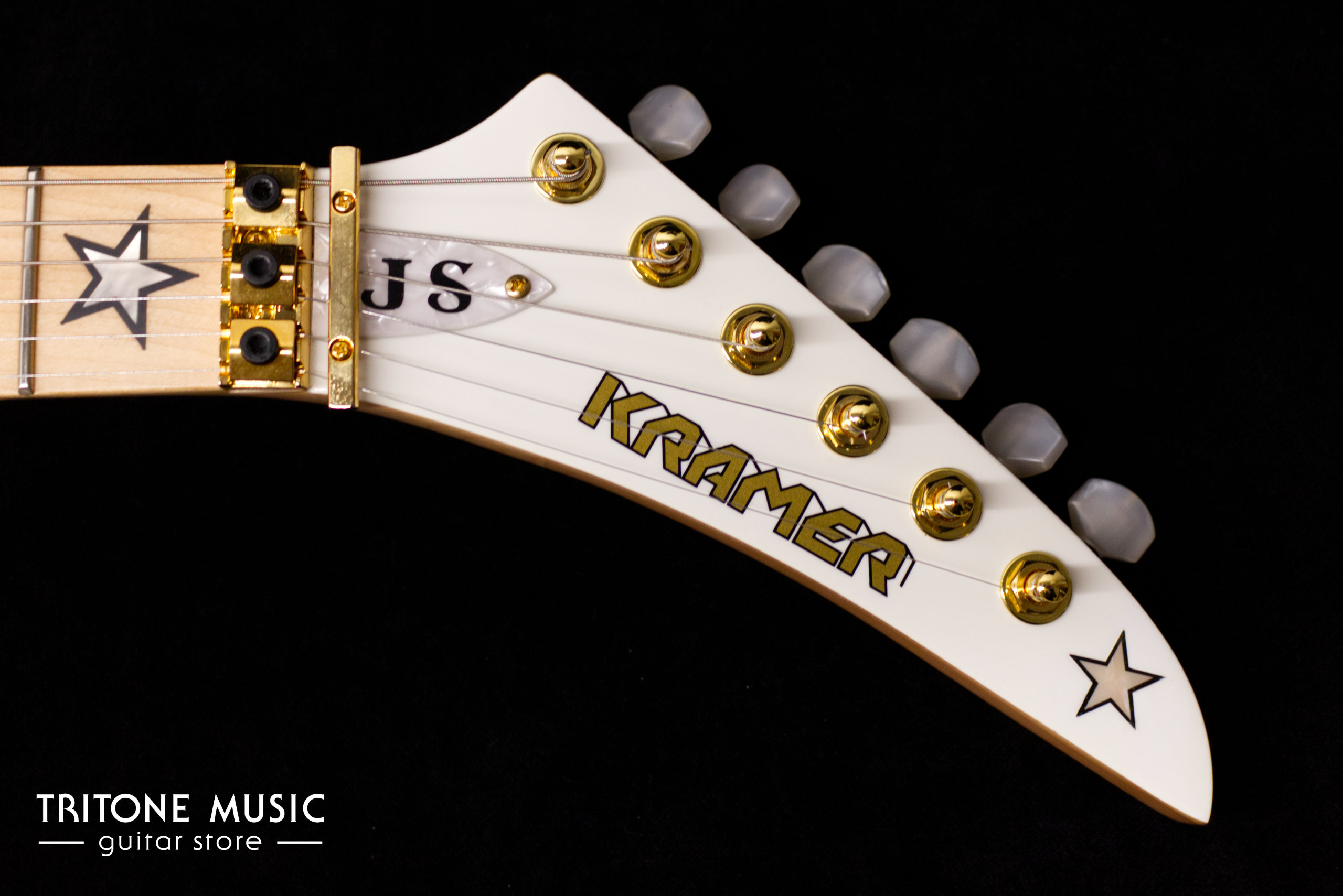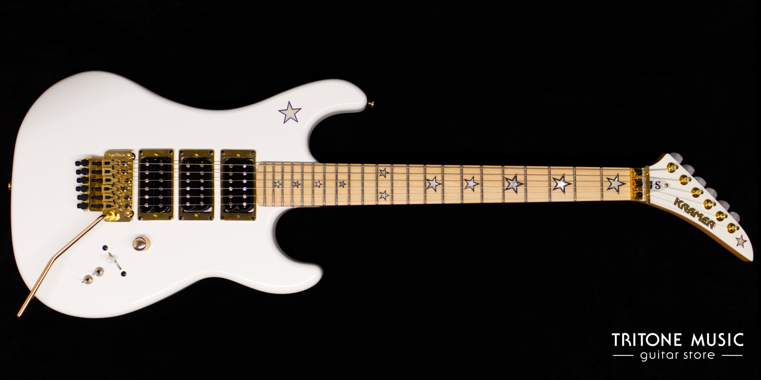 Der Kramer-Klassiker aus den 1980er Jahren, die Jersey Star, feiert ihr Comeback als Teil der Kramer Icon Collection mit den ikonischen Jersey Star-Inlays aus Perlmutt, goldener Hardware, Seymour Duncan® JN- und JB™-Humbuckern sowie einem Floyd Rose®-Tremolo der 1000er-Serie. Dieses Exemplar präsentiert sich in der Farbe Alpine White und befindet sich in einem exzellenten, nahezu neuwertigen Zustand.