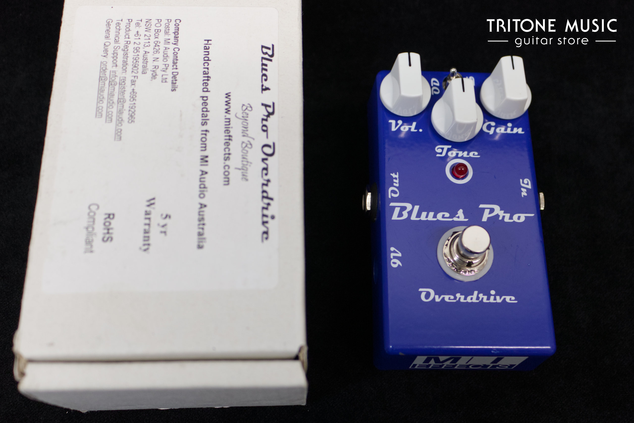 MI Audio Effects Blues Pro Overdrive Pedal V3 – handgefertigt in Australien, mit umschaltbarem Overdrive- und Fuzz-Modus.