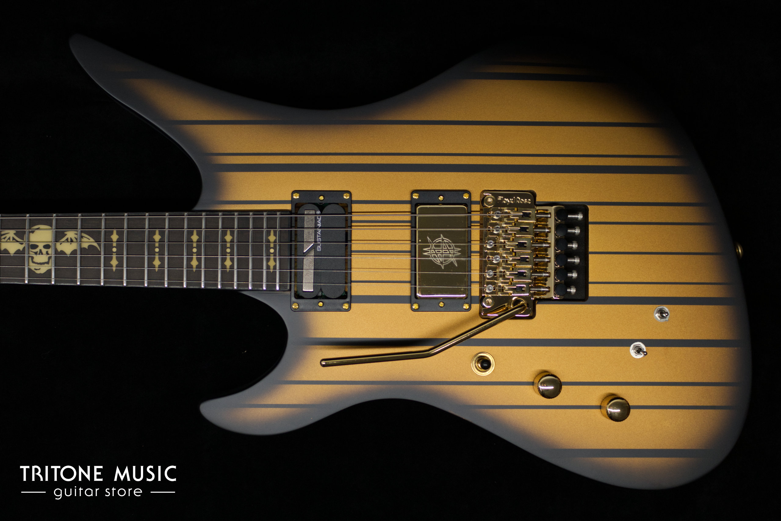 Synyster Gates, Gitarrist der Metal-Band Avenged Sevenfold, ist seit Jahren Schecter Artist und hat ebenso lange seine eigenen Schecter Signature Modelle, die sich insbesondere durch die Avenger-Form und ausgefallene Finishes auszeichnen. Floyd Rose Tremolo, Schecter USA Signature Pickups sowie der optionale Sustainiac sind für SynysterGates unerlässlich.